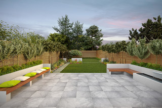 Get garden patio ideas here with our gallery of 29 patios surrounded by lush gardens of tall grasses, plants and trees.